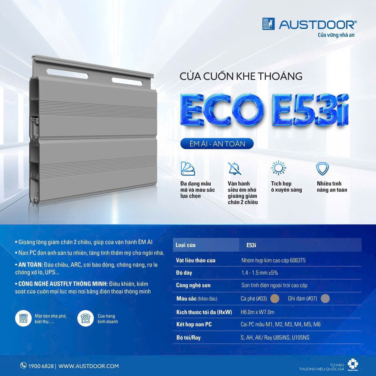 Thông số cửa cuốn tấm liền Austdoor